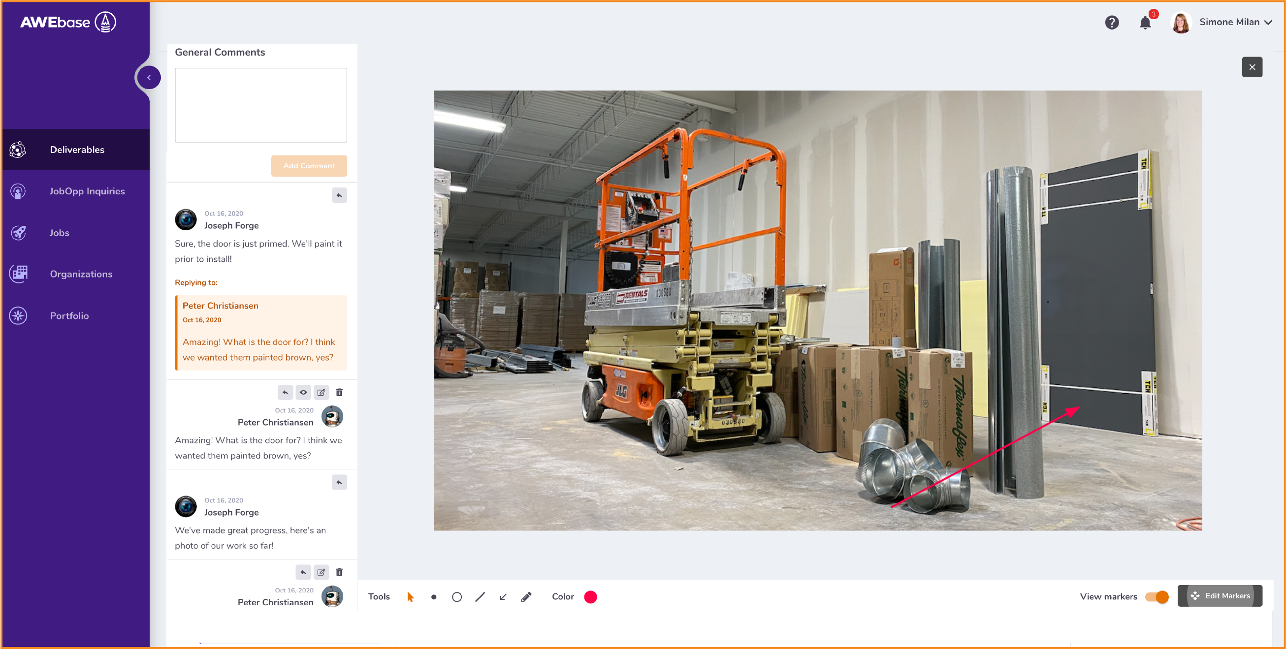Communicate with your clients directly in the context of your uploaded work using powerful and varied interface tools.